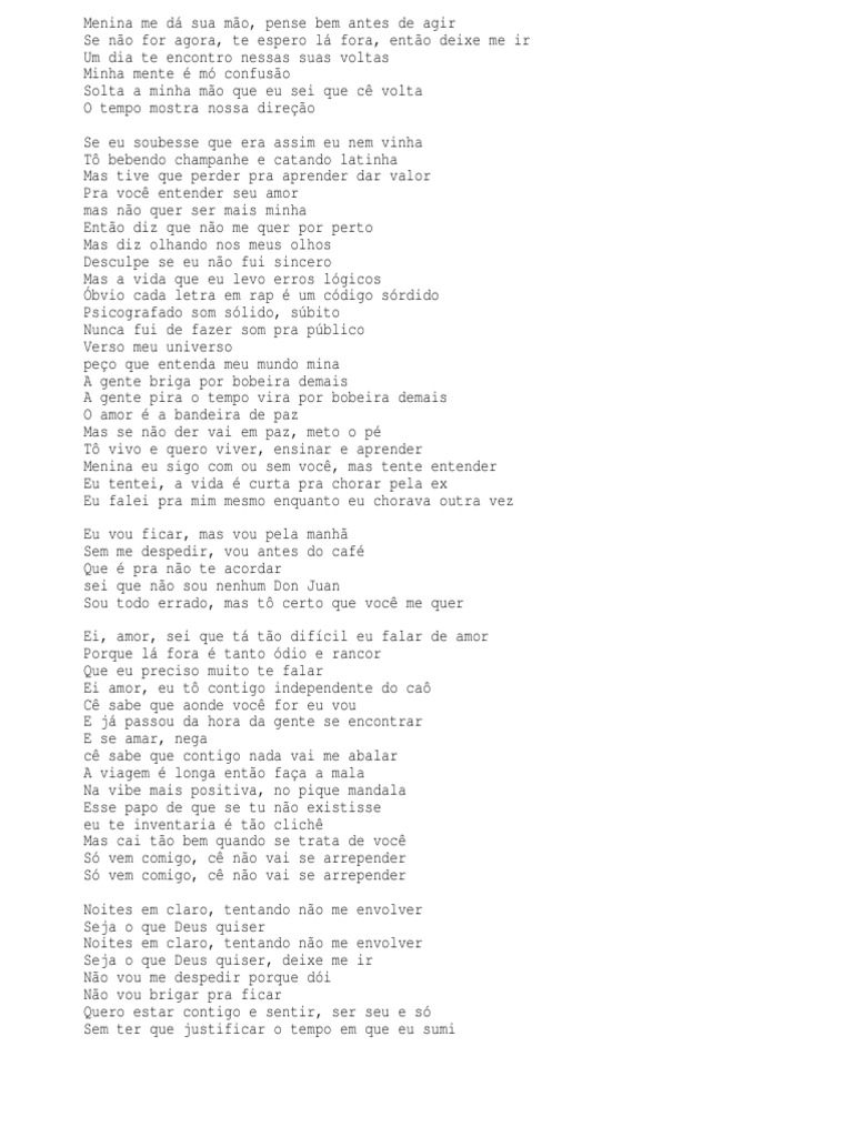More images for letra 1kilo deixe me ir » Tô bebendo champanhe e catando latinha. É inegável que o acústico deixe me ir é um dos maiores hits do selo e abriu grandes portas para os artistas. Minha mente é mó confusão.