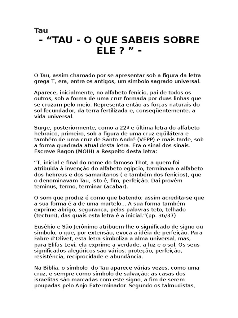 T Letra Grega. Tau ( τ ou τ; Este artigo ou secção não cita fontes confiáveis e independentes.