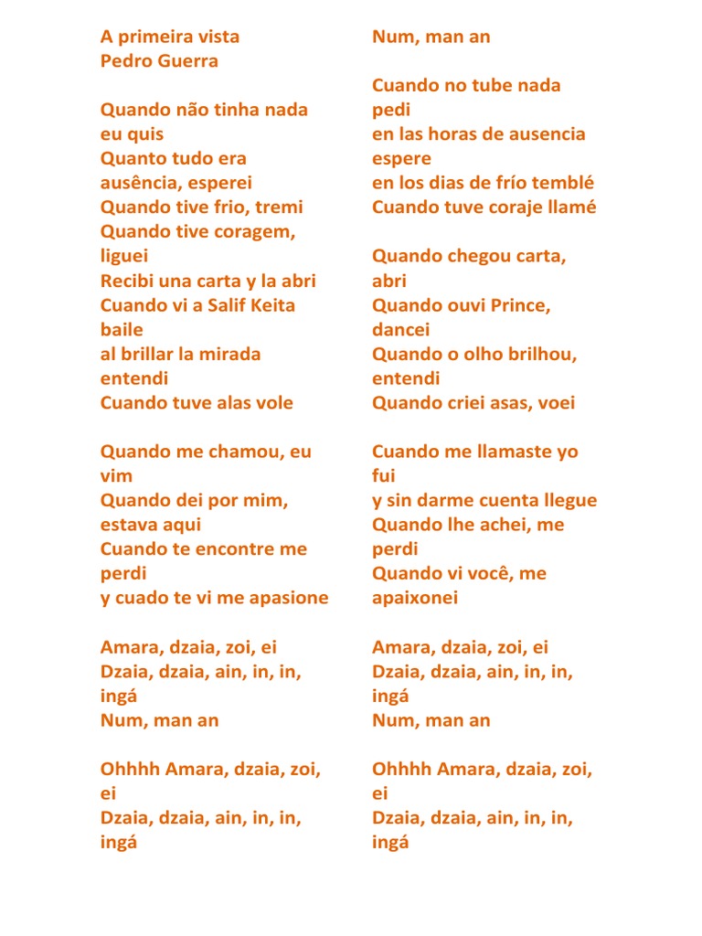 Á Primeira Vista Letra. Eu nunca pensei que um olhar ele foi assim capaz de mudar o meu mundo e esta maneira louca da vida. Ask us a question about this song.
