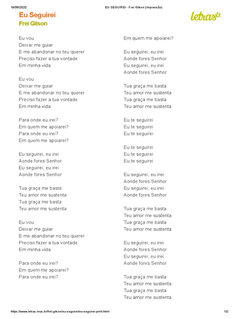 Letra Da Musica Eu Te Seguirei Frei Gilson